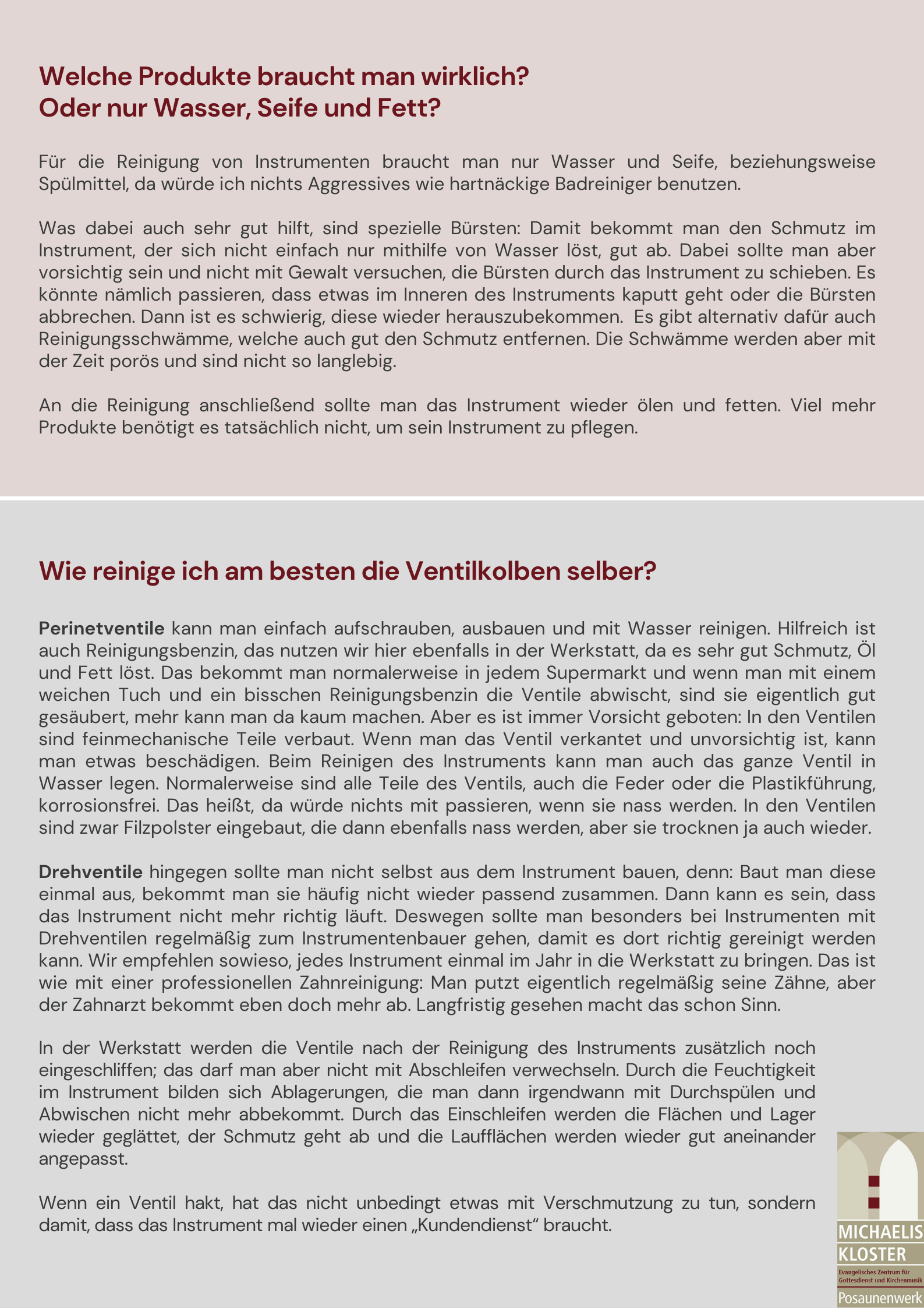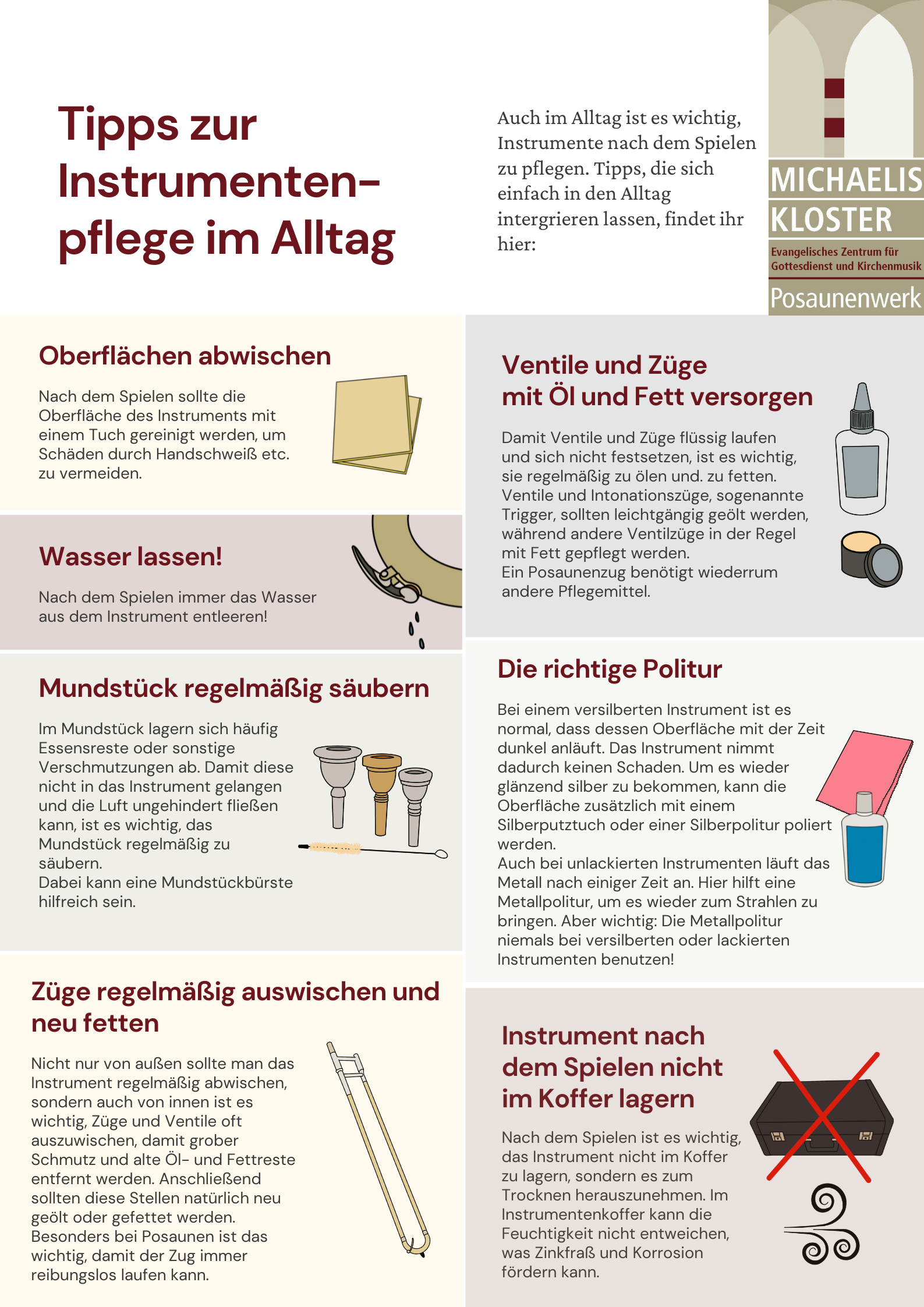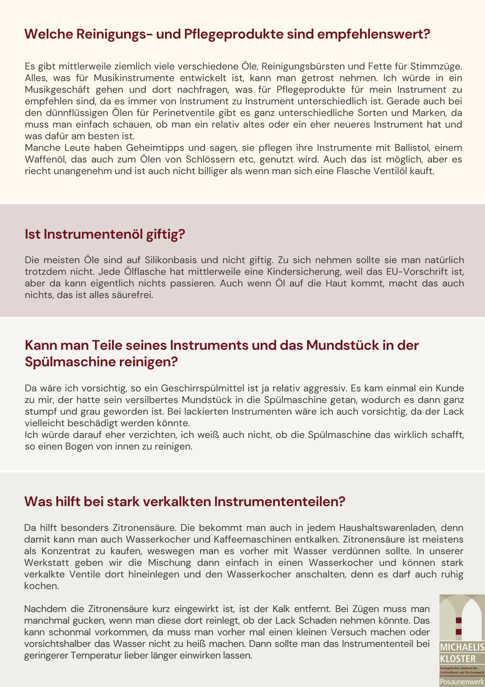 Auf dieser Seite gibt es Infomaterial rund um die Pflege und Reinigung unserer geliebten Blechblasinstrumente! Zum Anschauen, Teilen und hoffentlich als Anregung, eurem Instrument mal wieder etwas Gutes zu tun!